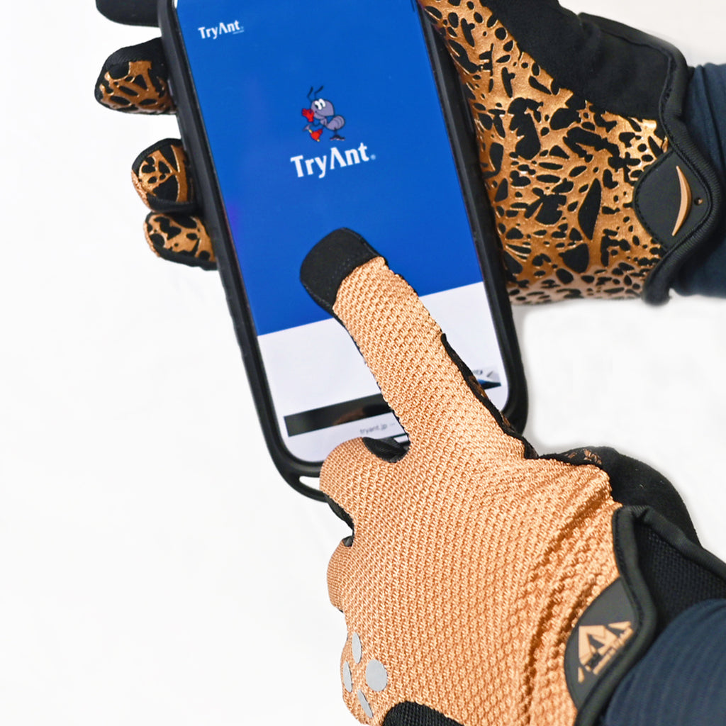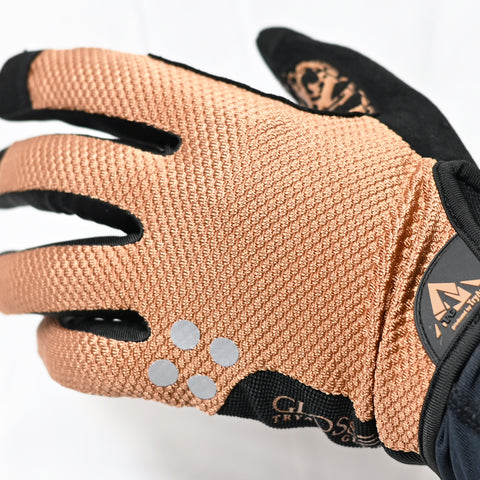 手の平一面のマイクロファイバー&カラーシリコンのカモフラ加工が、耐久性とグリップ力を向上。